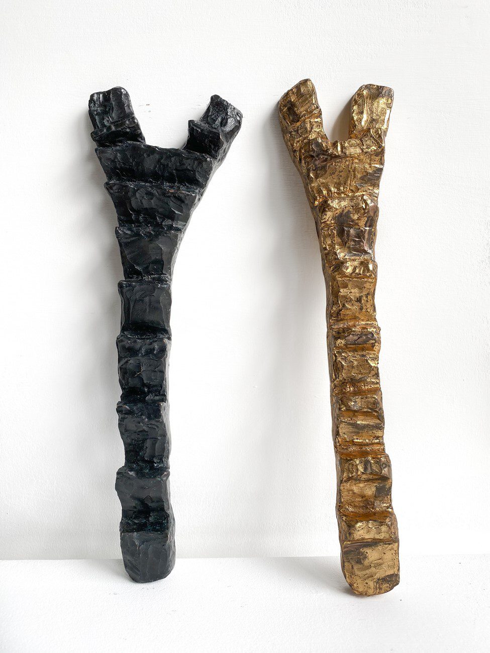 I made a pair of bronze Dogon ladders that I think illustrates this idea of an object being able to carry multiple symbolic narratives. Dogon ladders are interesting objects to think about. They were carved out of tree trunks and used to access granaries and rooftops in Mali, however miniature versions were also made as spiritual objects representing the ascent of the soul. This double usage is fascinating. I was drawn to make my own pair reflecting on this relationship between the physical, practical world and the spiritual. With a symbolic object like this there are always more layers and parallels such as the psychological and alchemical processes of ascending and descending, the volatile and the fixed.