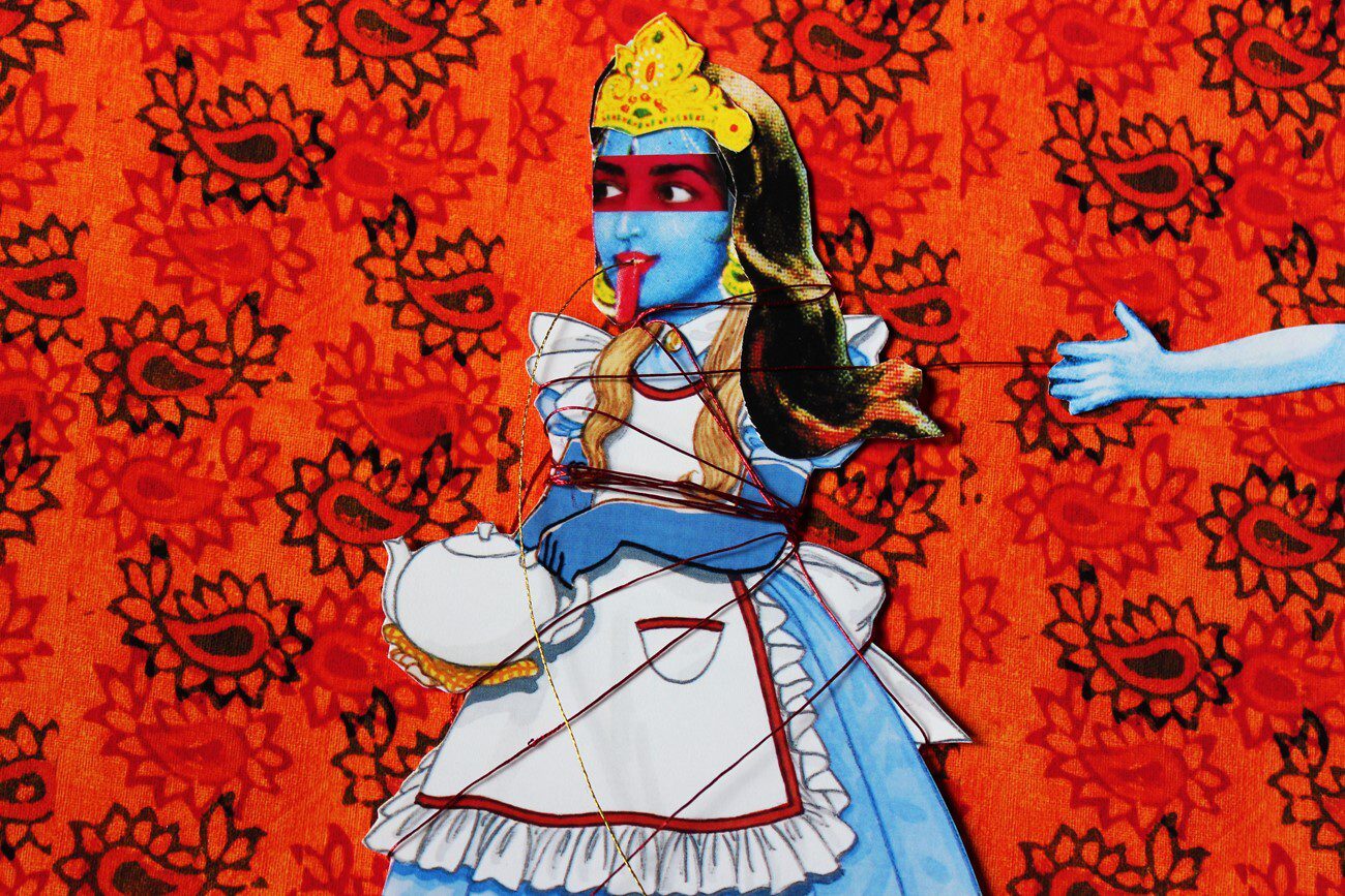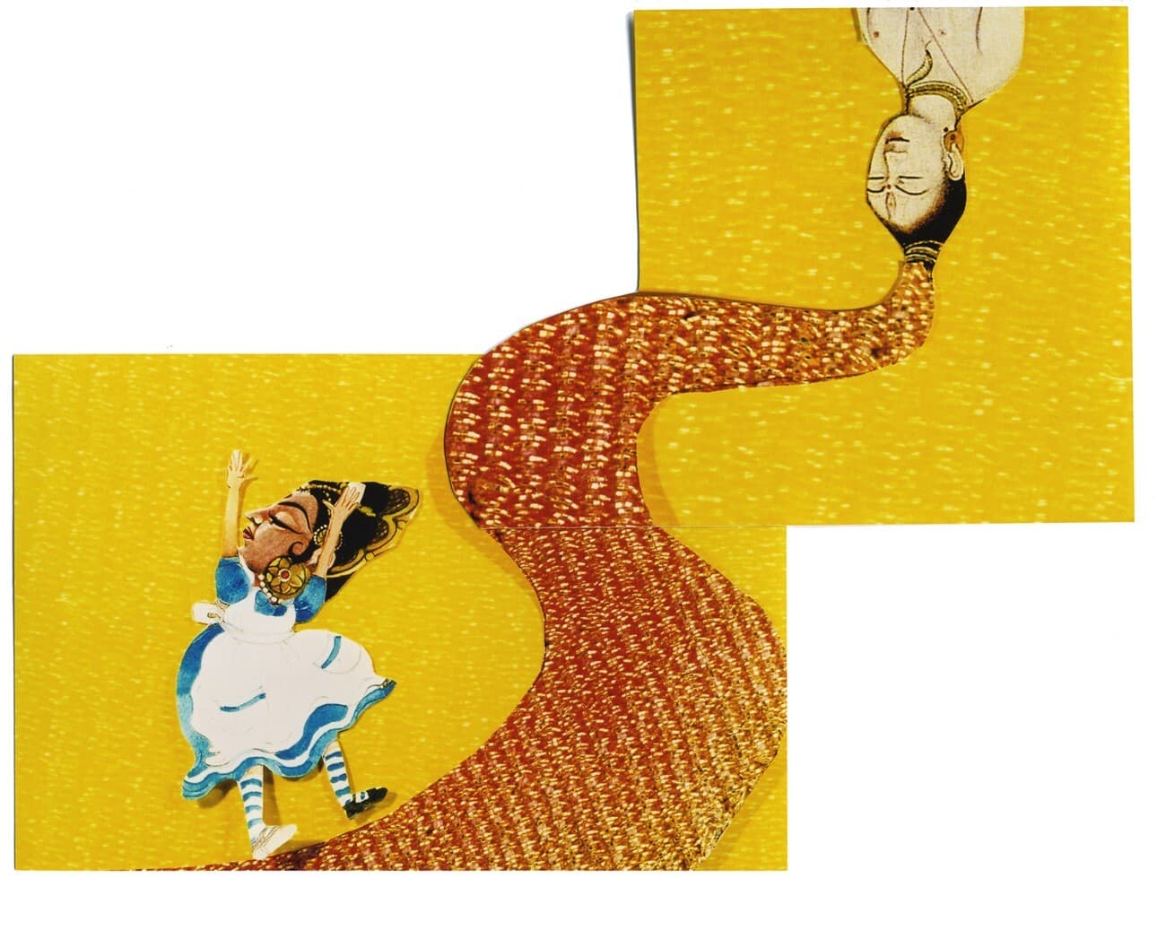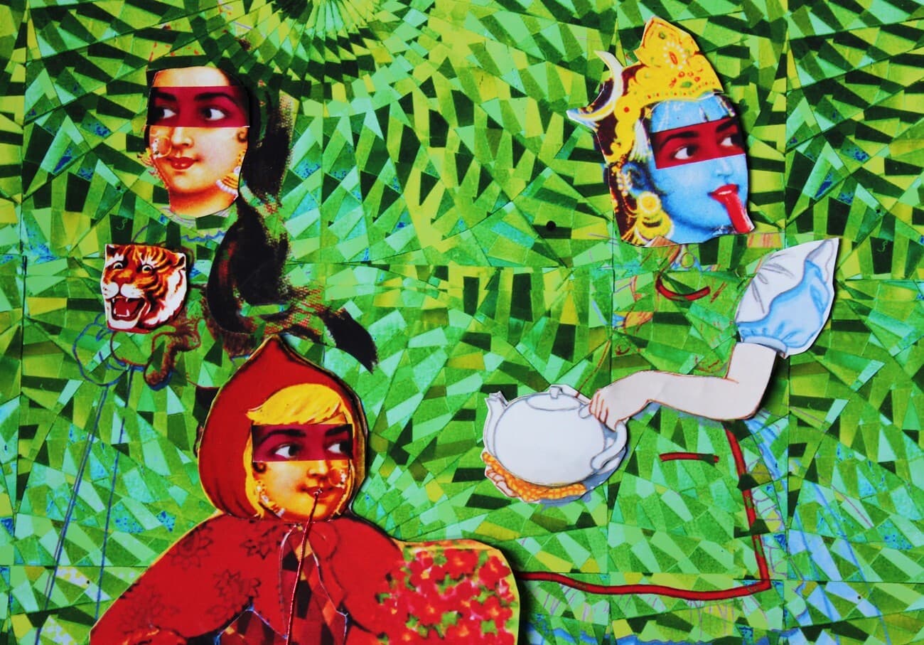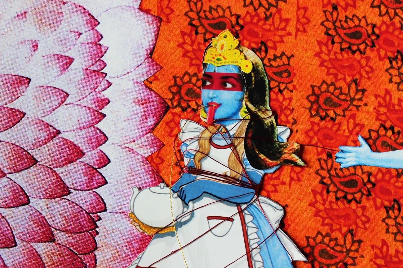 The images I use speak to me in some way. As a child I grew up with stories and images like Alice in Wonderland and The Wizard of Oz alongside Amar Chitra Katha comics and images of Hindu gods and goddesses. I’m interested in these juxtapositions.