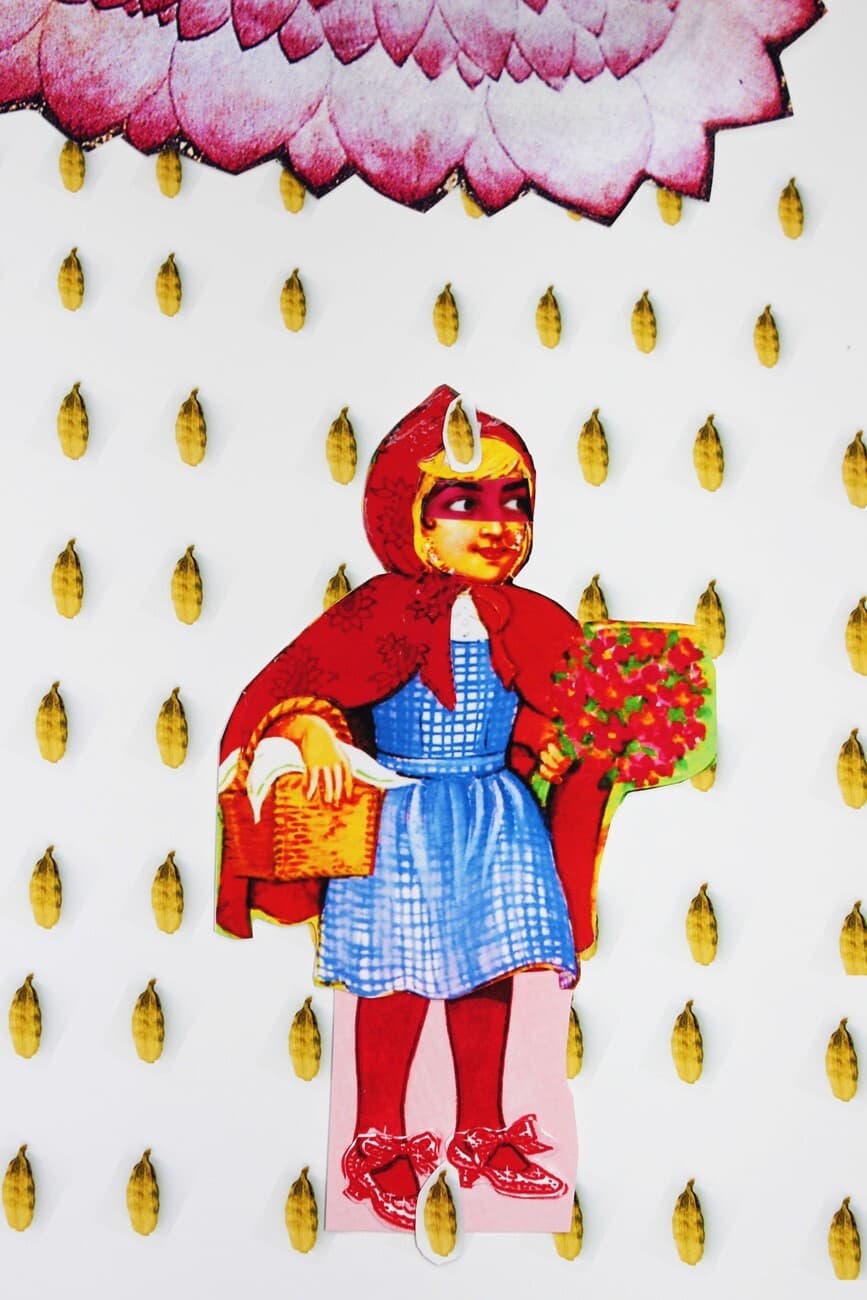 I find, make, and manipulate images in order to construct playful yet complex narratives. I re-create fictional female protagonists that belong to the childhood stories I have grown up with. These composite characters belong to many different stories and histories. Part Kali, part Alice in Wonderland, part me.