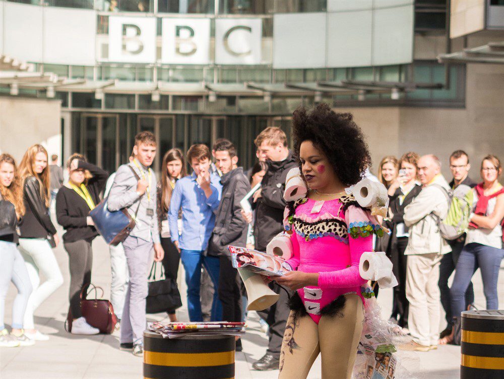 My name is Quilla Constance (abbreviated QC) and I’m an interdisciplinary artist of (Black) Jamaican and (White) British heritage. I deploy my practice across the media of paintings, costumes, photographs, live performances and music videos, staging these artworks across varied contexts, such as: art galleries, lecture halls, theatrical venues, music clubs, social media, and the street. My practice seeks to conflate and strategically activate the intersections between these cultural zones/learned categories, to agitate and surprise audiences – ultimately highlighting the absurdity of hegemonic systems of categorisation which are often injurious, since they restrict and marginalise BAME, LGBT, female and working-class identities.