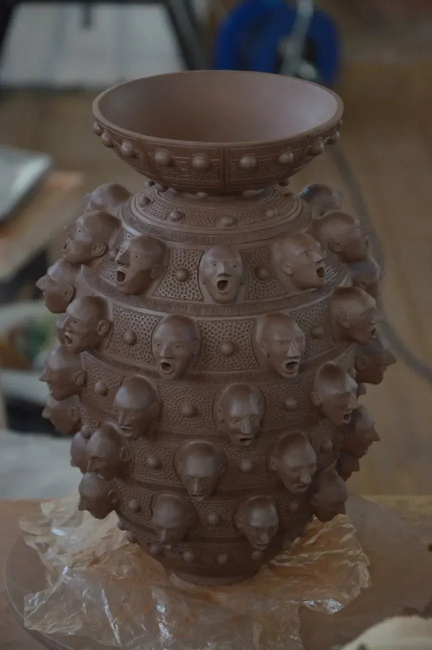 Terracotta. Ht 34cm. 2016/17 work in progress. Hand built form, one of a series of works exploring the vessel as a signifier.
