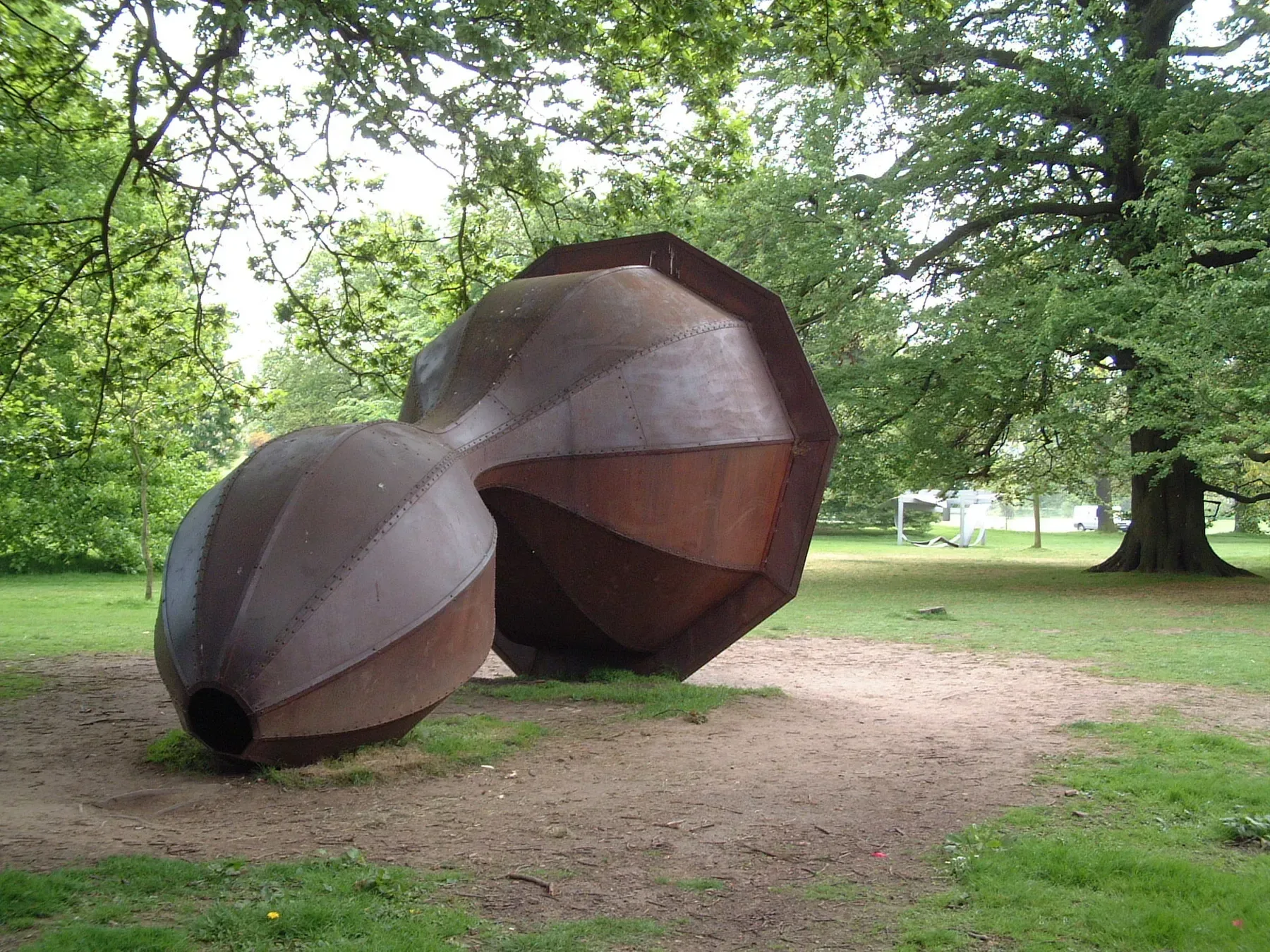 ‘Beyond and Within’ was fabricated from sheets of hot rolled steel which I welded and constructed in my studio/workshop. Each panel was laser cut, after a long consuming period of time scanning each paper pattern used to create the 1:10 scale model. This work was kindly supported by B.Allsop Ltd. Precision metal working company. In 1992 I was a recipient of a Henry Moore Bursary in association with the Yorkshire Sculpture Park. this bursary enabled me to produce this sculpture and a group of smaller forms ‘Inside Out’ for a one person exhibition at the YSP in 1995-96. ‘Beyond and Within’ remained on exhibition in the park for another 9 years, until it was purchased by The University of York.