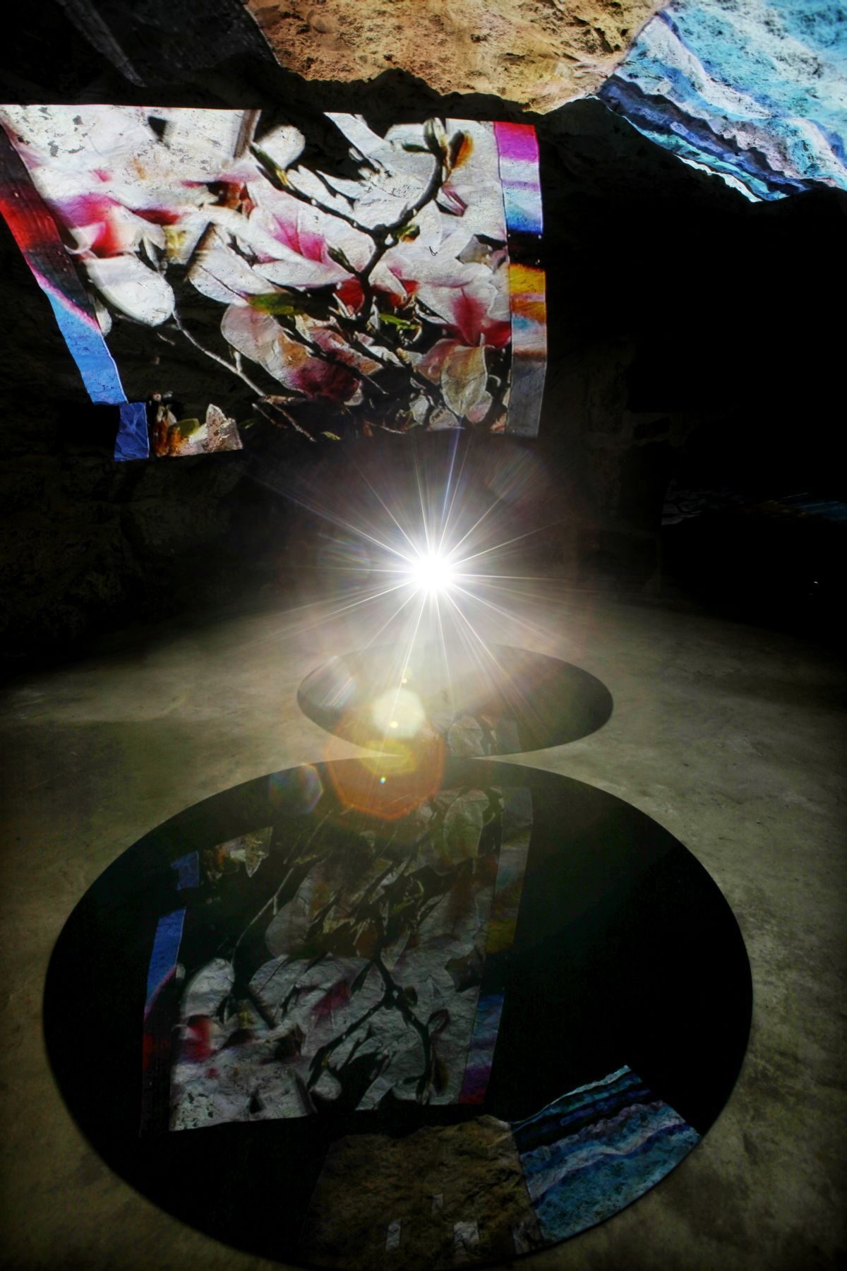 Her installations such as 'Fata Morgana' (2012), 'Shields' (2012), 'The Mean Reds' (2011) and 'Chroma/Levante' (2011) are made up of shimmering sculptural surfaces, rotating semi-transparent Perspex structures, with layers of moving image projection, used as much as 3D light objects, as for delivering visual content into the construction. The shadow play of the assemblage, the changing conditions of the environment, when activated by human presence, implicates and engages an audience. This is enhanced by the technological devices left trailing through the room and the reverberating of the digitally-engineered sound, often alongside live analogue, DIY interventions such as a piano, a violin or a child's tinkling toy.