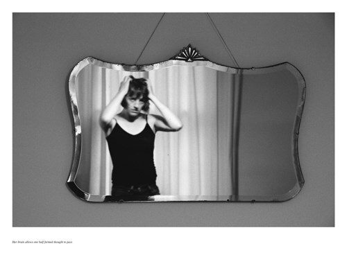 The accompanying series of twenty image/text black and white photographs (2011-2012), which have been the main focus of the residency, elaborate upon these themes, extracting carefully chosen lines from Jarman’s ‘Chroma’ (1994) and his diary, 'Smiling in Slow Motion' (2000), together with literary quotations sourced from writers such as Kate Chopin, Emily Dickinson, T.S Eliot, Sylvia Plath and Christina Rossetti.