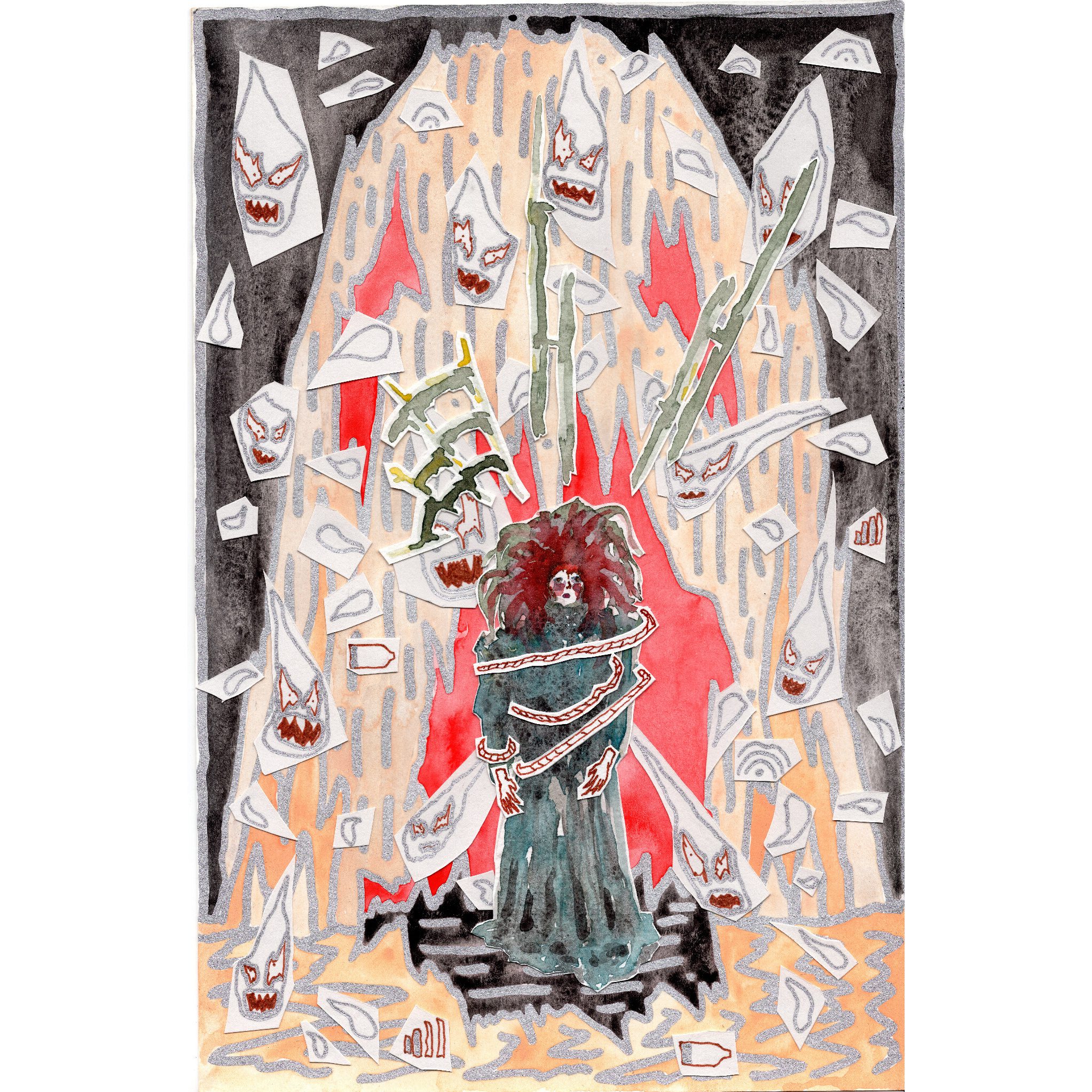 As part of my mentoring for this fellowship, I met with Michael Hill from Temple Bar in Dublin and he proposed that the dismembered thing was not just a strategy for things like drawing and sculpture, but a central philosophy for the work. That it is part of what my work is about. I obviously work around horror and had literally been researching Christian martyrs when Michael and I were talking, but I’d never really made the connection before. That the dismembered body could be a model for what I was doing, similar to Hobbes’ Leviathan, or Bataille's Acephale man. So, I’m currently, gently, trying to unpick this a little in my work. Trying to understand the repeated motifs of floating heads and hands, and the writing that is so frequently hyper focused on very localised bodily sensation and the moments when parts of your body no longer feel like they are part of you. It's early days, but It's been a really really helpful guiding premise.