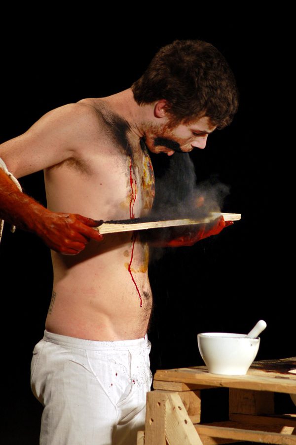 Over the years Bromage's performance being has evolved from a dark clown with a sinister, self-harming edge towards a more subtle combination of artist-illusionist, thus preparing the ground for an original delivery of tales and actions that belong both to the solidly grounded traditions of popular shows and to a generous, resolutely contemporary practice of performance art.