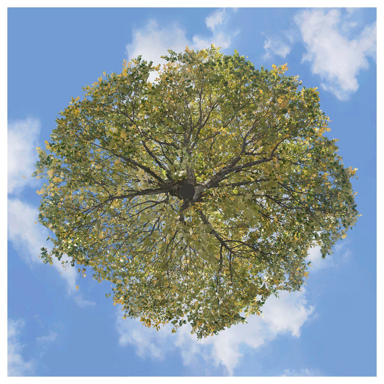 360 degree digital composite image of a tree observed skyward (part of the ongoing METEOR series)