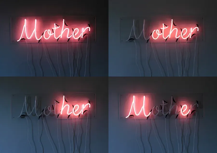 I made the work in response to my own experience as a young single mother navigating the changes within my sense of self as I became a woman, and the struggle to balance my own needs and desires with those of my child. The work aimed to present a maternal subjectivity, reclaiming the objectification of the maternal identity. Neon is a very male-dominated medium and this piece was partly inspired and produced in response to Martin Creed's 'Mothers' (2011) which I felt was another attempt to glorify motherhood from a patriarchal perspective.