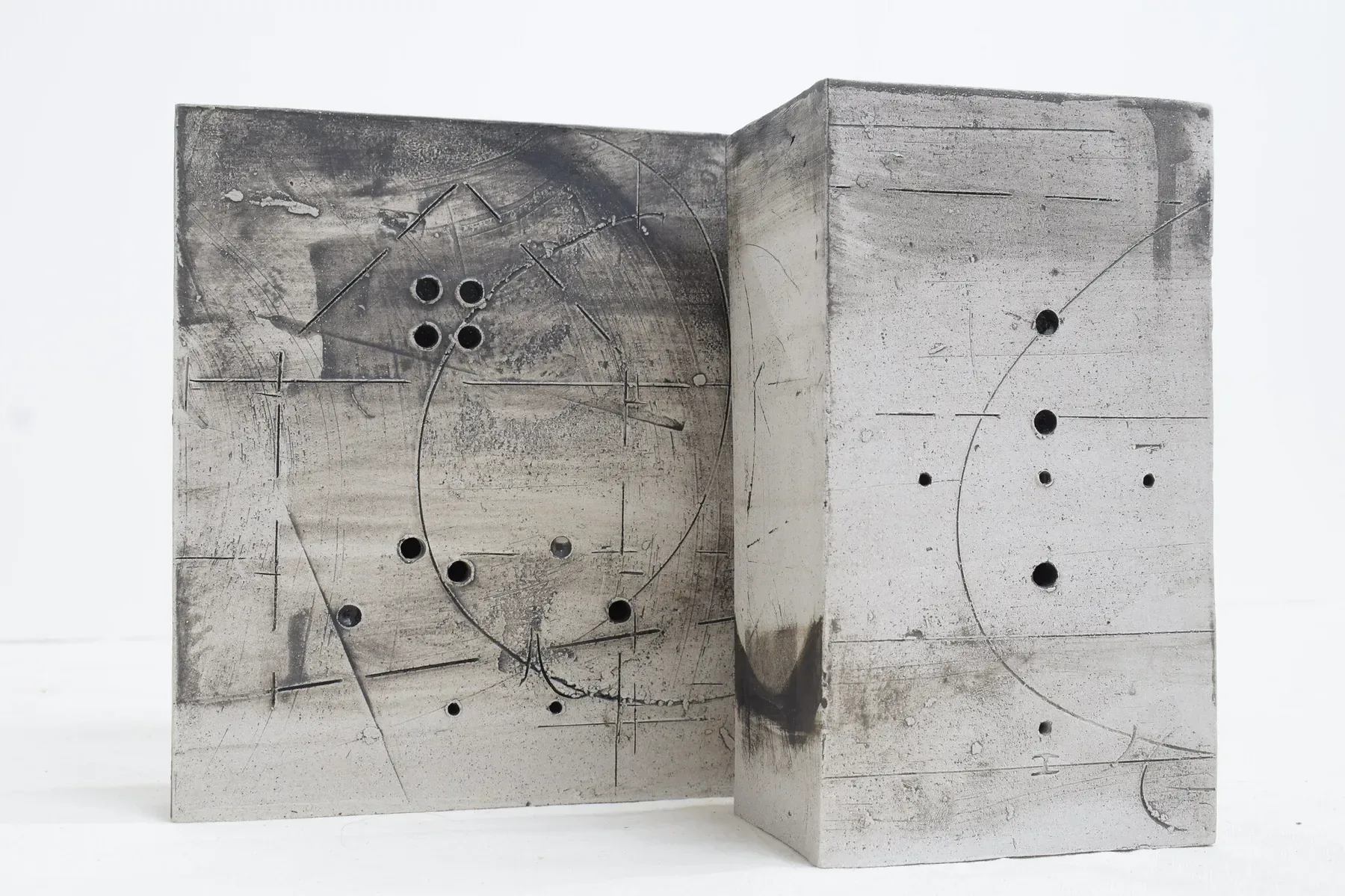 Slab built ceramic from templates and drawn annotations added throughout the construction process.