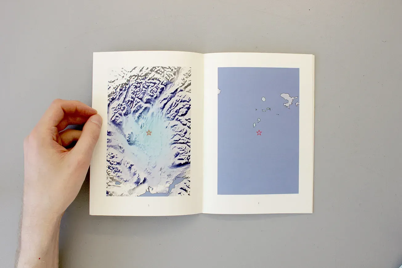 Epicentres is a book containing a collection of computer-generated images that indicate the position of earthquakes in remote locations. Tremors that are low on the Richter scale might only be sensed by seismological recording equipment rather than be felt by humans. These images have been automatically generated from sensor data, and exist as automated representations of geological events that may never have been subjectively experienced.
