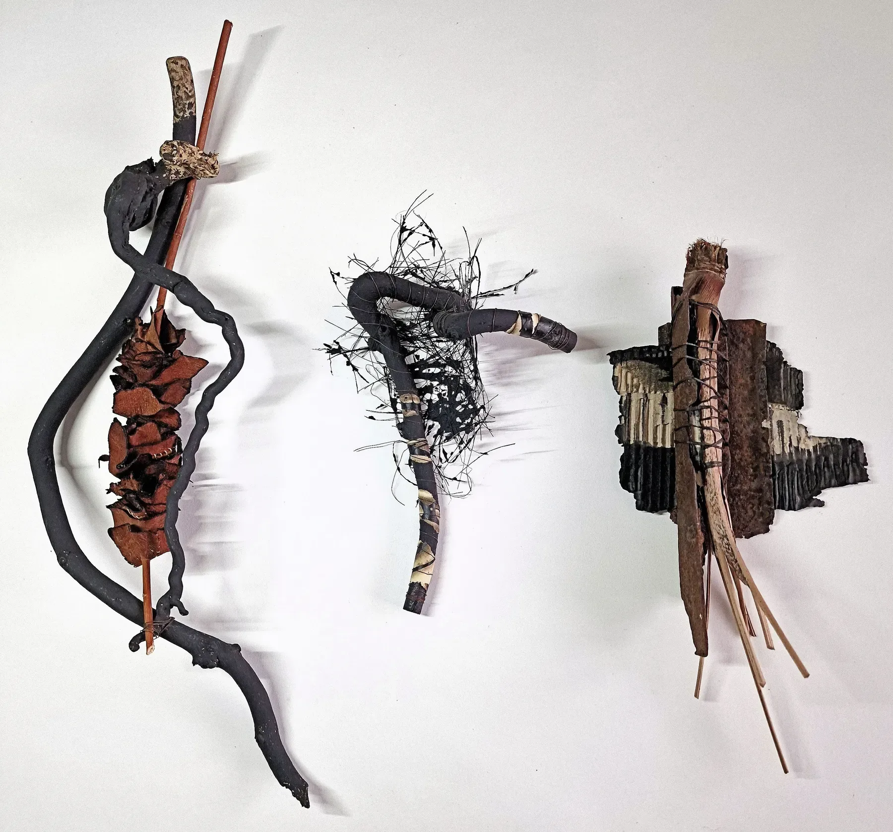 They are experimental, relying on hands-on learning experience and problem solving. Many iterations were tried; juxtaposing and rearranging the materials until ideas felt resolved.