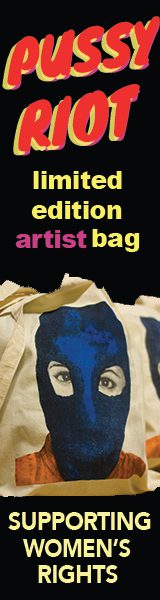 In 2014 we commissioned artist Wendy Saunders to create a limited edition cotton tote bag featuring one of her paintings of Pussy Riot.